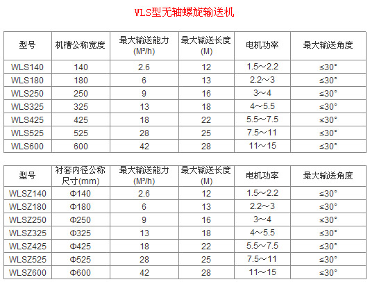 四、无轴螺旋输送机的主要技术参数